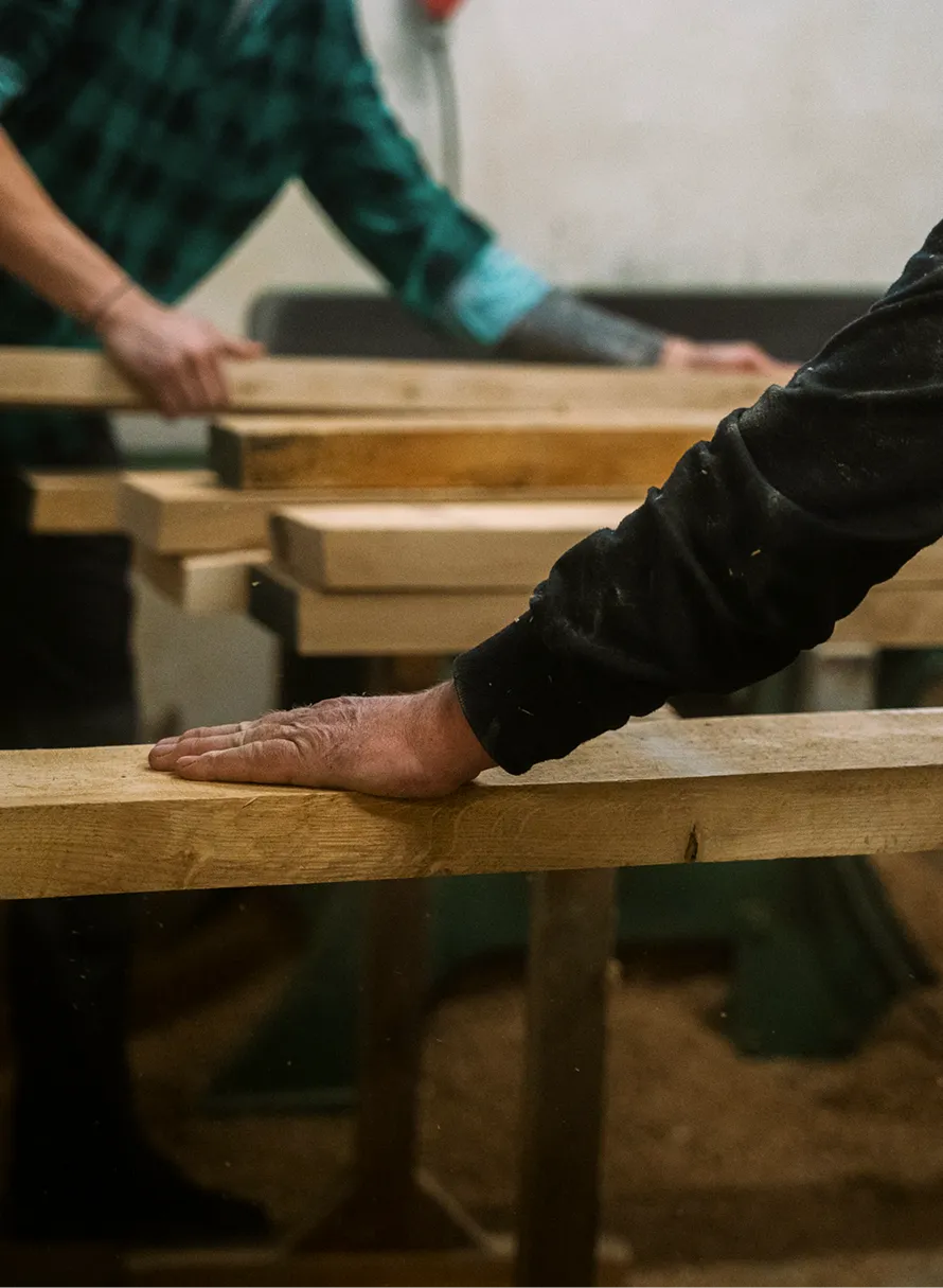 W procesie produkcji łączymy tradycyjne techniki rzemieślnicze z precyzją wykonania. Każde połączenie jest przemyślane, każdy detal dopracowany ręcznie. To właśnie ta dbałość o szczegóły sprawia, że nasze stoły wyróżniają się trwałością i unikalnym charakterem.