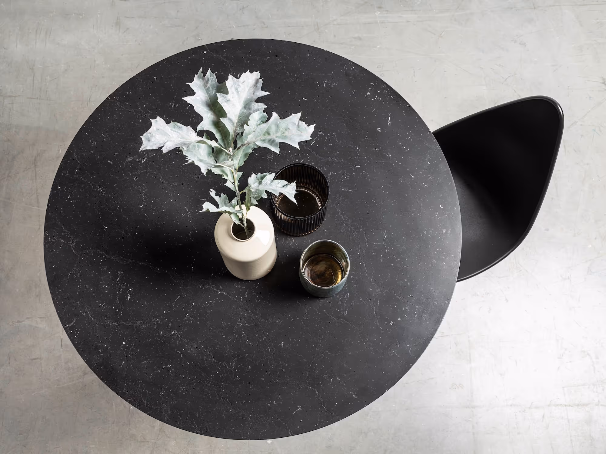 W tym projekcie forma i materiał grają równą rolę. Szczotkowanie podkreśla fakturę kamienia, a masywna, stalowa podstawa dodaje całości nowoczesnego, architektonicznego charakteru. To okrągły stół z marmurowym blatem, który zwraca uwagę detalem i jakością wykończenia.